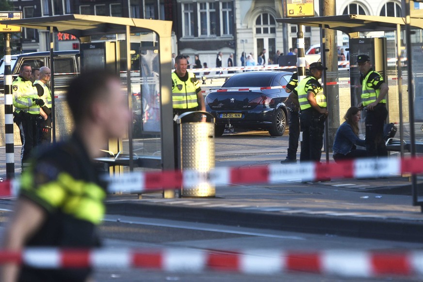 Niederländischen Medienberichten zufolge handelte es sich offenbar um einen Falschparker, der losraste, als sich Polizisten seinem Auto näherten. Nach dem Vorfall trafen mehrere Rettungswagen am belebten Bahnhofsvorplatz in der Amsterdamer Innenstadt ein.