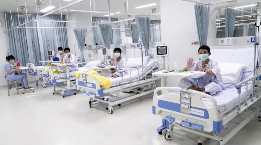 Dass die Buben wohlauf sind, zeigt ein aktuelles Video aus dem Spital der Provinzhauptstadt Chiang Rai, das das Gesundheitsministerium veröffentlicht hat. Die 11- bis 16-Jährigen bedanken sich bei ihren Rettern und der Öffentlichkeit für die Hilfe und Unterstützung und versichern, ihnen gehe es gut.