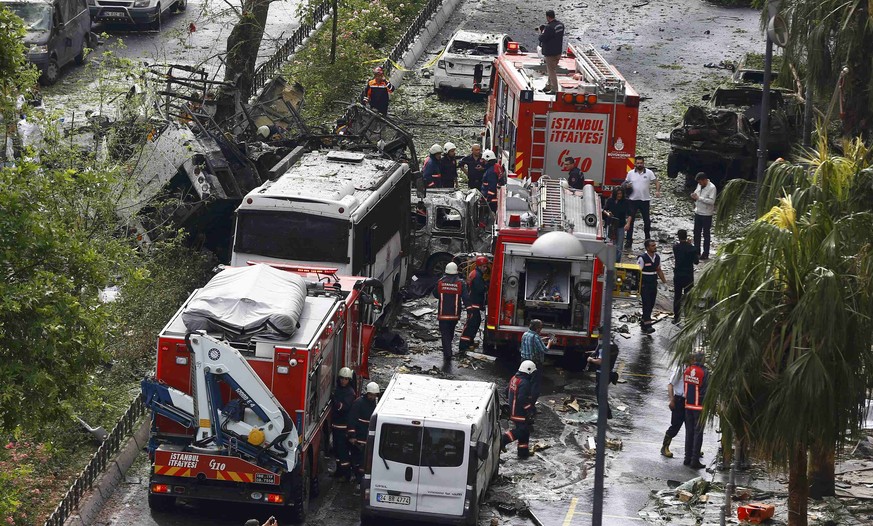 Unter den Opfern des Anschlags seien sieben Polizisten und vier Zivilisten, sagte Istanbuls Gouverneur Vasip Sahin vor Journalisten am Ort des Geschehens.