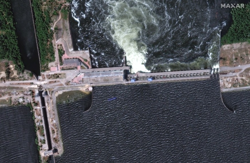In der Stadt Cherson leben die Menschen seit Monaten unter russischem Artilleriefeuer. Luftaufnahmen zeigten, dass dort im Stadtteil Korabel von vielen eingeschossigen Häusern nur noch das Dach aus dem Wasser ragte. Zur Lage am flachen Südufer in russischer Hand gab es kaum Informationen. In Nowa Kachowka dicht an der Staumauer berichtete die russische Verwaltung von Überschwemmungen.