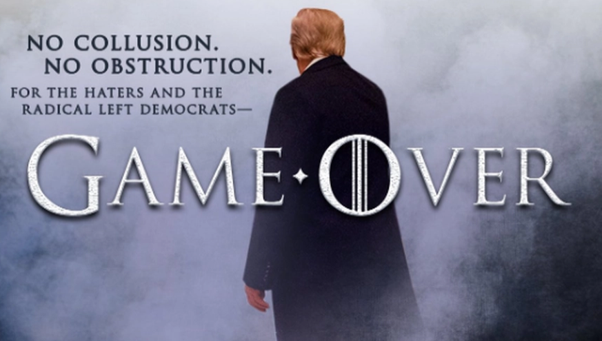 Der Mueller-Bericht (mehr Infos dazu hier) zeige, dass es weder illegale Koordination mit Russland während des US-Präsidentschaftswahlkampfs noch Justizbehinderung gegeben habe, sagte der Präsident. Und dann griff er mal wieder in die Photoshop-Trickkiste. Auf Twitter postete Trump eine triumphierende Fotomontage im Stil von «Game of Thrones».
