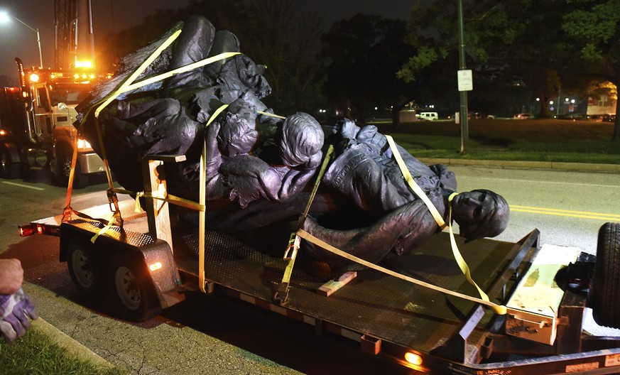 Mit Kränen wurden am Mittwoch ein Monument für die Generäle Robert E. Lee und Thomas «Stonewall» Jackson sowie die Statue des Sklavenhalter-freundlichen Vorsitzenden des Obersten Gerichtshofes, Roger B. Taney (1777-1864) entfernt, berichtete der Lokalsender WBALTV.