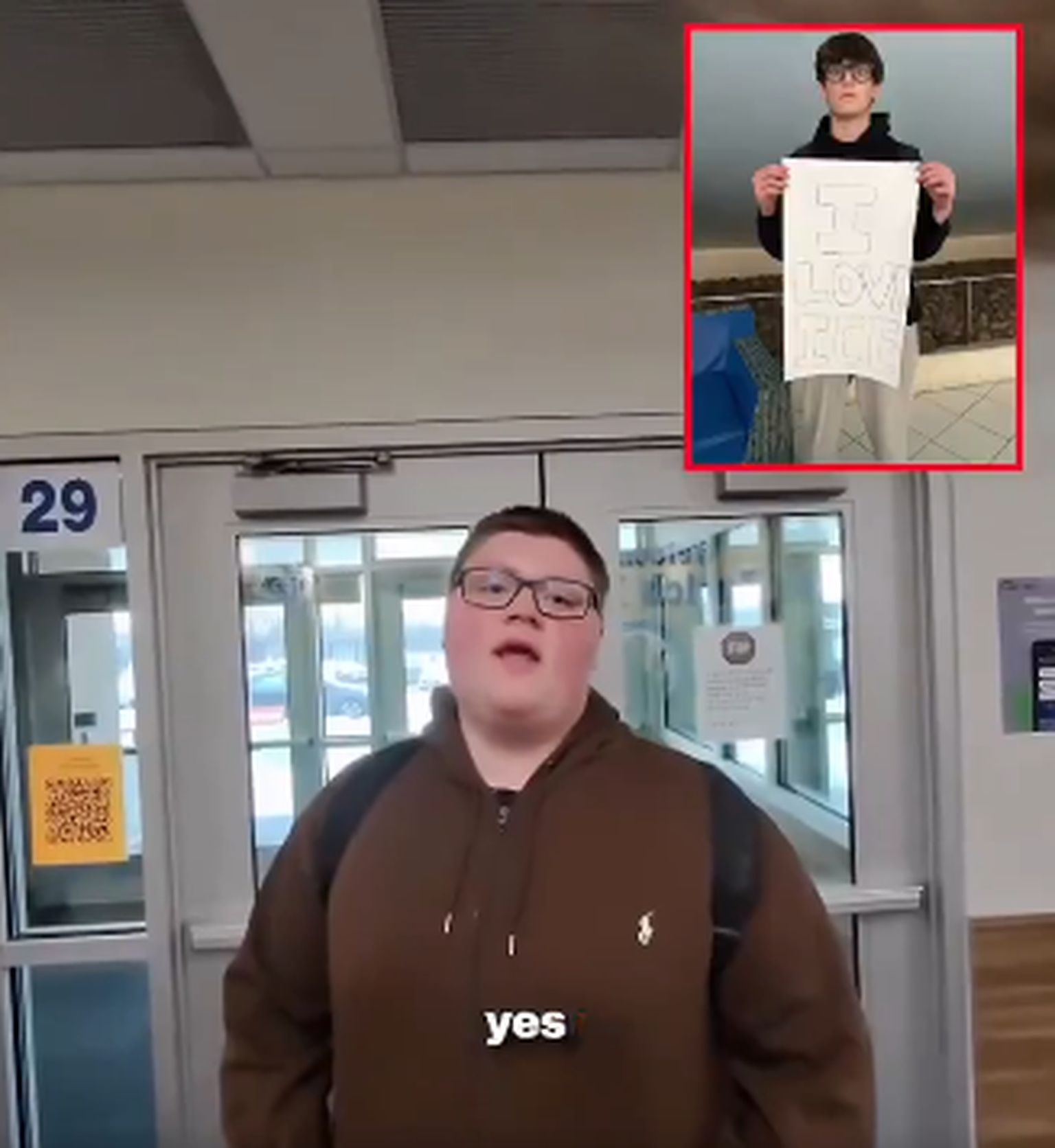 Das besagte Video stammt von einem US-Schüler, der beim Eingang seiner Schule ein Plakat mit der Aufschrift «I love ICE» hochhält und Parolen skandiert, während sich andere Schüler für einen Protest gegen die Einwanderungsbehörde einfinden.