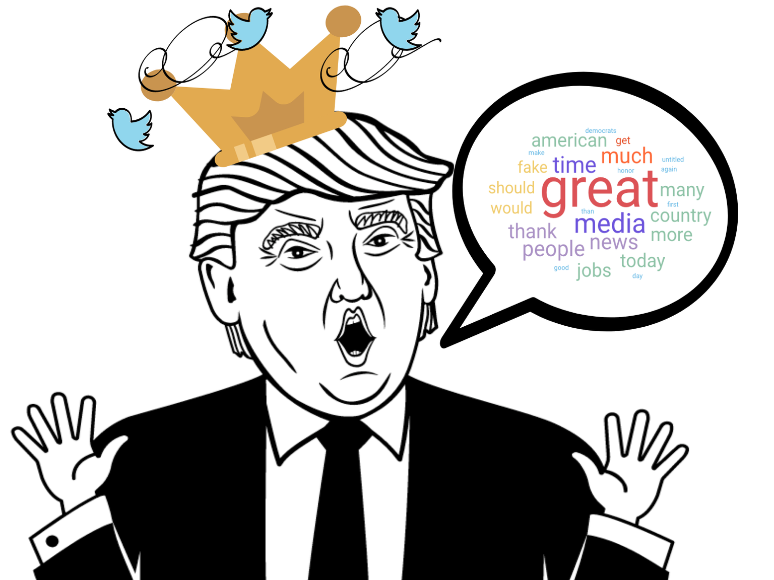 Wenn man den Inhalt der Tweets von Donald Trump genauer unter die Lupe nimmt, findet man viele wiederkehrende Elemente. Denn Trump benutzt in seinen Tweets vor allem ein Wort am häufigsten, wie die folgende Word Cloud zeigt.