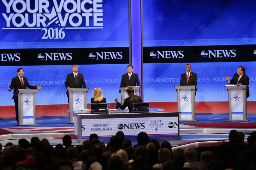 Marco Rubio, den nach den Vorwahlen in Iowa viele als heimlichen Favoriten sahen, machte in Manchester, New Hampshire, keine gute Figur. Der Senator aus Florida wurde gleich zu Beginn hart rangenommen von Chris Christie, Gouverneur von New Jersey. Christie warf Rubio mangelnde Erfahrung und einen schwachen Leistungsausweis vor. Rubio reagierte damit, dass die gleiche Sequenz – in etwa: «Amerika ist das beste Land der Welt, Obama hat einen fiesen Plan, wir müssen unbedingt Clinton verhindern.» – dreimal fast wortwörtlich wiederholte.
