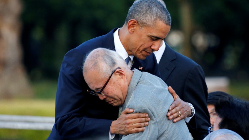 Zuvor hatte Obama im Friedenspark das Museum besucht, das die Auswirkungen des ersten Atomwaffeneinsatzes in der Menschheitsgeschichte dokumentiert. Der Blitz der Atombombe hatte Hiroshima in ein Inferno verwandelt. Von den 350'000 Bewohnern starben auf einen Schlag schätzungsweise mehr als 70'000 Menschen; Ende Dezember 1945 lag die Zahl schon bei 140'000. (sda/dpa/afp/reu)