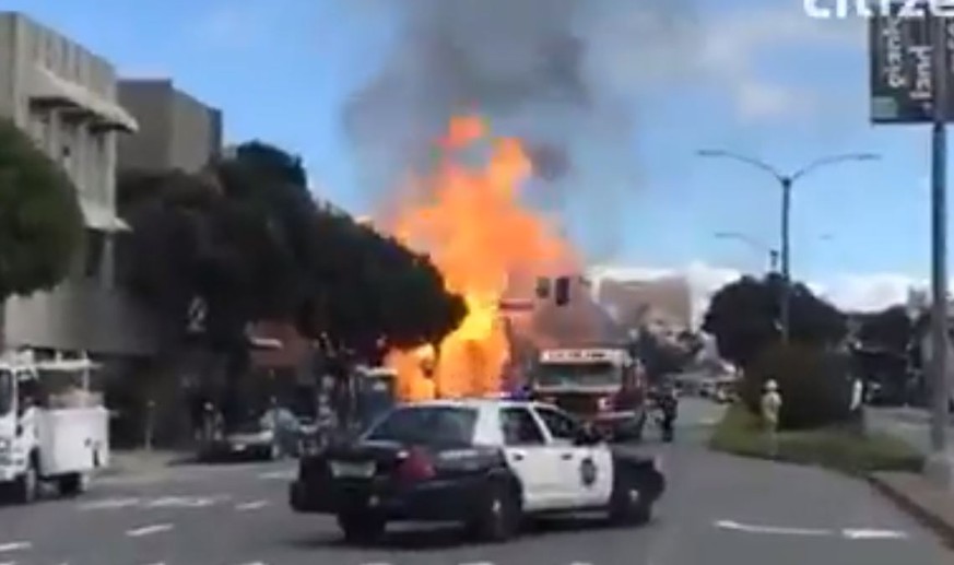 Gasexplosion in San Francisco – Flammen schiessen meterhoch aus dem Boden