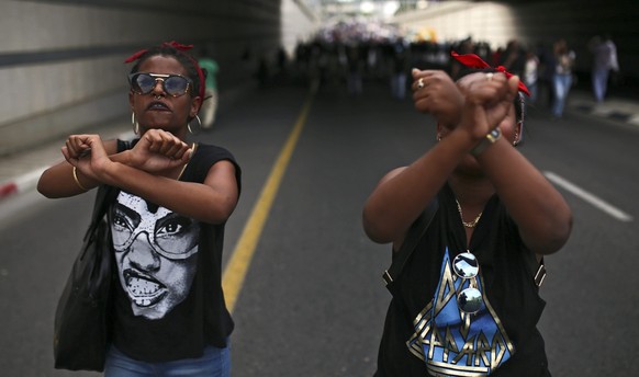 In Tel Aviv blockierten die Demonstranten zunächst während des Berufsverkehrs eine wichtige Strasse und lösten damit Staus aus. Dann marschierten die Demonstranten durch die Innenstadt von Tel Aviv. Viele Teilnehmer reckten ihre Arme über Kreuz in die Luft, als steckten sie in Handschellen. «Ich bin schwarz, deshalb muss ich heute demonstrieren», sagte der 34-jährige Eddie Maconen. Er selbst habe nie Polizeigewalt erlebt, aber seine Gemeinde sei betroffen.