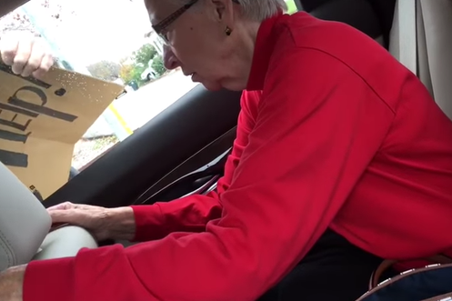 Sohn überrascht Oma zu Weihnachten als Penner am Strassenrand