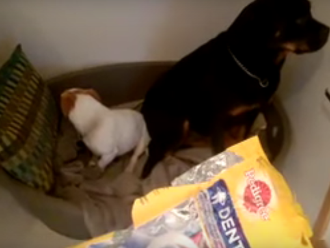 In dieser Katze-Hund-Beziehung ist wohl eindeutig klar, wer die Hosen anhat