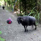 Das passiert, wenn du einen Volleyball in den Wald hängst (und ein Schafbock dran vorbeigeht)