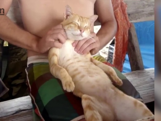 Es braucht nur eine Pfauenfeder, um eine Katze verrückt glücklich zu machen