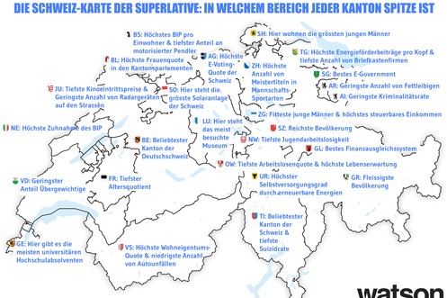 Die Schweiz-Karte der Superlative: Wo die Reichsten, Fleissigsten und Sportlichsten wohnen