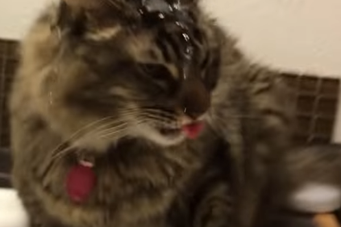 Diese Katze will ihr Glas Wasser unbedingt für sich