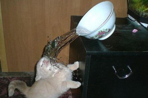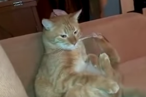 Was genau hier passiert, weiss wohl nicht mal die Katze selber. Dafür hat sie die Lacher auf ihrer Seite