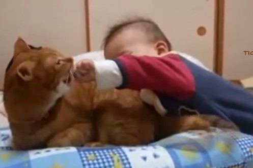 Und nun eine Katze, die einem Hund eine Kopfmassage verpasst
