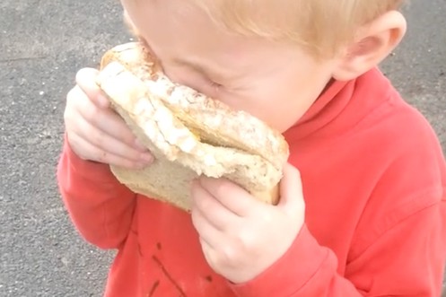Dieses Kind verkörpert unsere Träume: Essen und Schlafen gleichzeitig