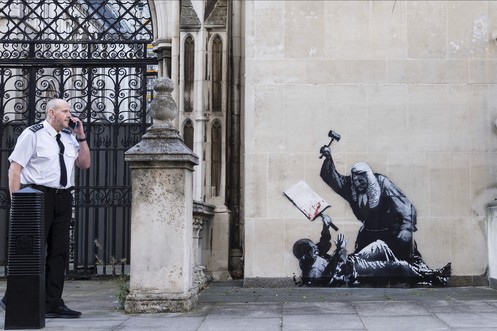 Graffiti am Gericht: Polizei ermittelt gegen Banksy