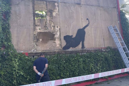 Neues Banksy-Motiv in London mit weisser Farbe beschmiert