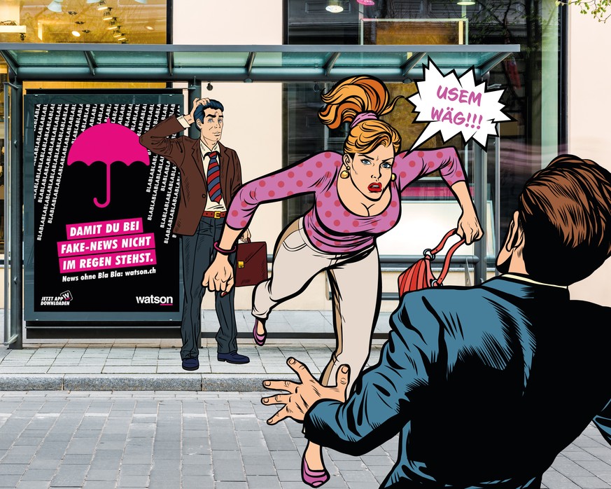 Es kommt anders. «Hey, Emma», ruft jemand hinter mir. Ich kenne die Stimme. Sie gehört zu einem Typen, mit dem mich mal eine Freundin verkuppeln wollte. Wir trafen uns auf einen Drink. Ein netter Abend. Einer. Weil: Funke nicht übergesprungen. Warum er hier und jetzt reden will, ist mir suspekt. Statt mich umzudrehen und selbstbewusst meine Frau zu stehen, verschnellere ich mein Tempo. Bevor ich wirklich weiss, wie ich aus diesem Kack hier rauskomme, bin ich mittendrin.