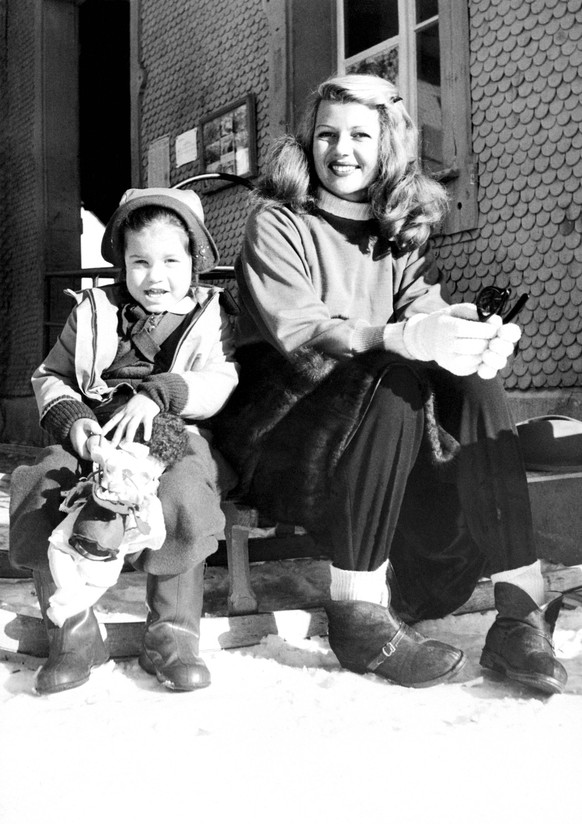 Weihnachtsferien in Gstaad, 1949: Rita Hayworth mit ihrer vierjährigen Tochter Rebecca.