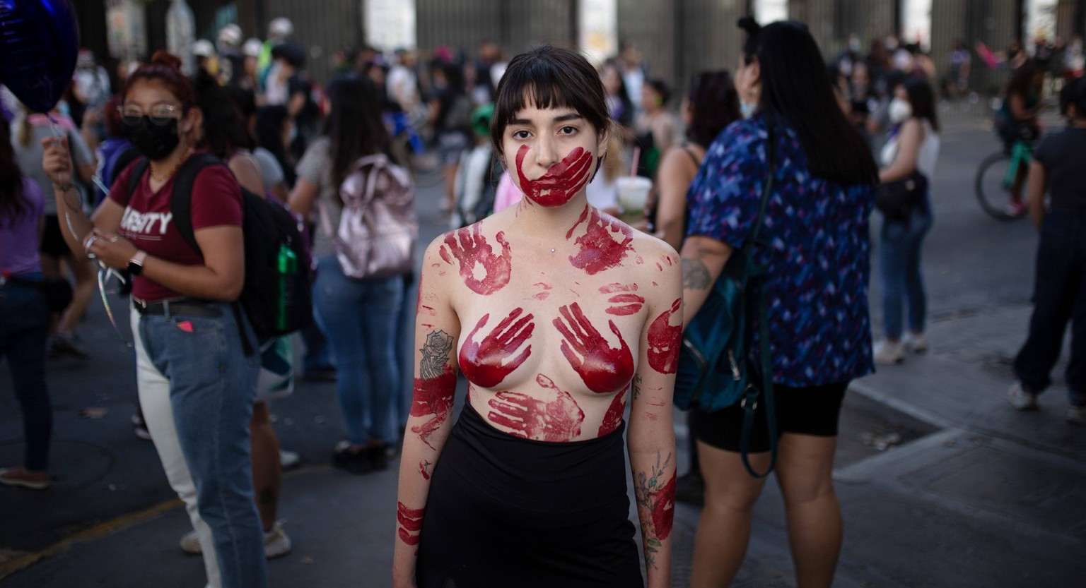 Diese Frau demonstrierte 2022 in Bogota, Kolumbien. In Kolumbien werden jährlich über 600 Frauen umgebracht.Bild: www.imago-images.de