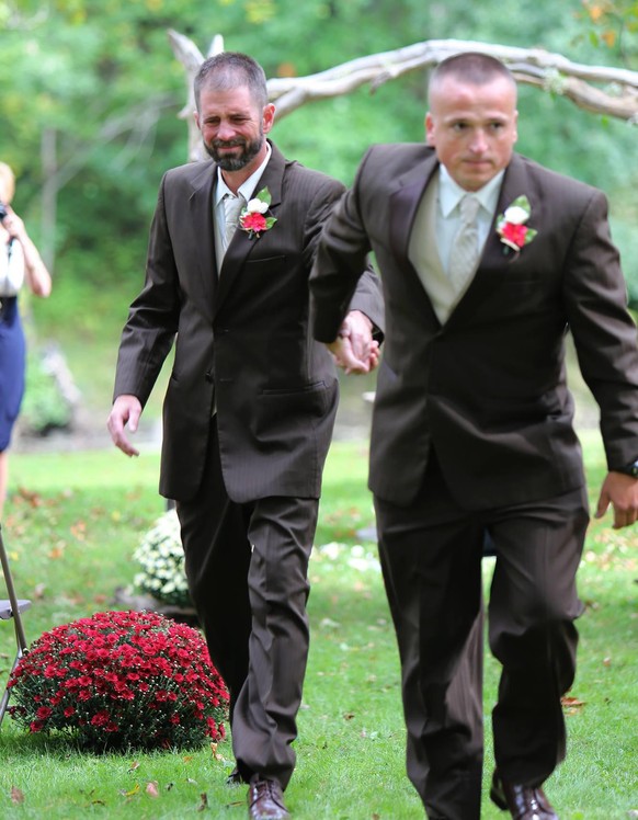 Delia D Blackbrun schreibt zu den Bildern: «Todd Bachman, der Vater der Braut, brachte seine Tochter zum Bräutigam, als er plötzlich anhielt. Während die Leute verwirrt von seiner Handlungen waren, ging er zum Stiefvater seiner Tochter. Todd streckte seine Hand aus, ergriff Brittanys Stiefvater und zog ihn zu seiner Tochter, um sie mit ihm gemeinsam zum Altar zu führen. NICHT EIN TROCKENES AUGE bei der Zeremonie.»