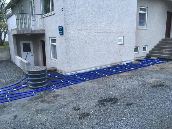 Was tun, wenn es überall im Land geothermisch beheiztes Wasser hat? Genau, es nutzen, um die Gehwege vor dem Haus zu wärmen, damit im Winter nicht geschaufelt werden muss.