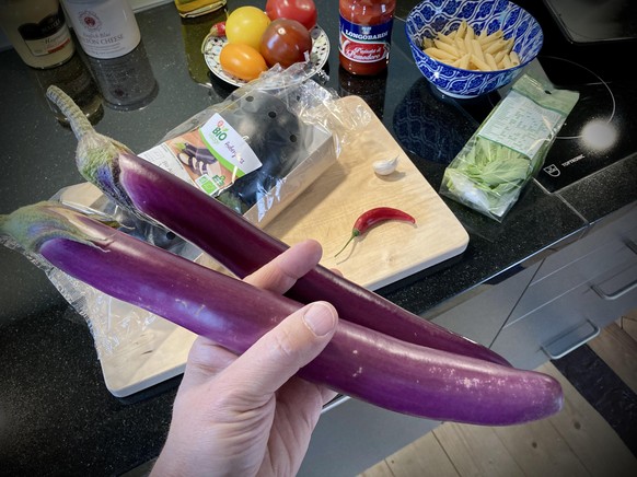 - Auberginen: Die gibt es in diversen Formen und Grössen und alle sind grossartig. Wenn ich die grossen, runden, violett-weissen italienischen Auberginen finde, benutze ich gerne diese. Doch die chinesischen Finger-Auberginen, die es bei meinem örtlichen Supermarkt gibt, sind auch gehörig fein. Schau' einfach, was im Angebot ist.
