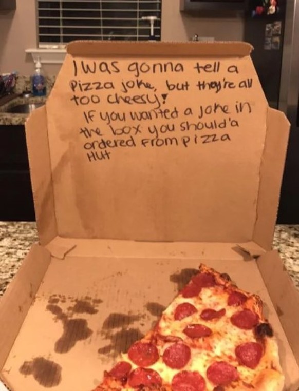 Pizzalieferanten wissen, wie man die Kunden zum Schmunzeln bringt. Angenommen, man stellt ihnen eine besondere Anfrage. Wie beispielsweise diese hier: