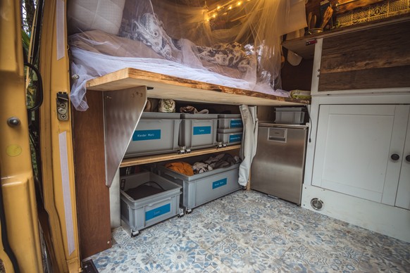«Das Bett. Wenn du nicht gut schlafen kannst, dann kackt es dich irgendwann an. Für uns war auch ein Wasserhahn mit einem grossen Wassertank und genügend Strom entscheidend. Dann kannst du auch mal länger weg von der Zivilisation wild campen.»