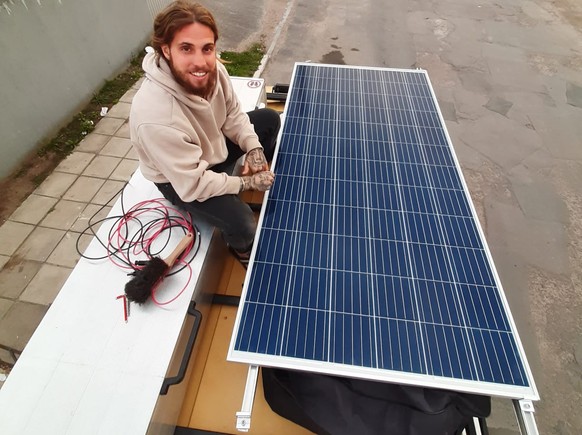 - Solarpanel: «Wir dachten erst, das kommt aufs Dach. Aber meist parkierst du ja im Schatten. Darum haben wir ein mobiles und faltbares Solarpanel. Wir können es am Zigarettenanzünder anschliessen und neben dem Büssli in die Sonne legen. Wir mussten allerdings schon nach wenigen Tagen ein neues kaufen. Das erste lieferte zu wenig Energie. Es ist jetzt doch fix auf dem Dach.»