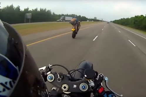 Motorrad trifft Biker im Gesicht – und der kommt mit blauem Auge davon