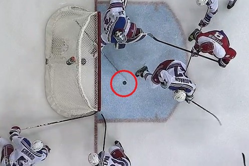 Das gab's wohl noch nie: NHL-Star wehrt eigenen Schuss ins leere Tor mit Stock ab!