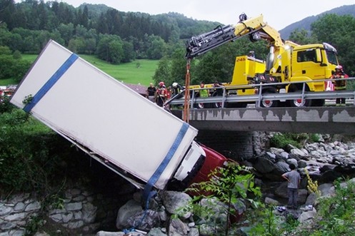 Muldenkipper stürzt 60 Meter ab – Fahrer am Kopf verletzt