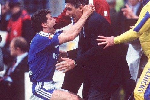 03.04.1999: Titan Kahn knabbert an Herrlich und fliegt in Kung-Fu-Manier auf Chapuisat zu