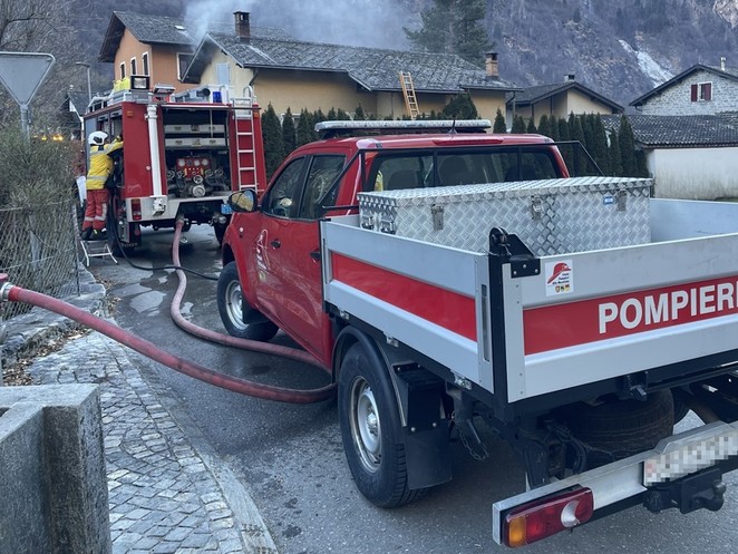 Feuerwehr rettet in Lostallo GR Haustiere und Gebäude vor Flammen