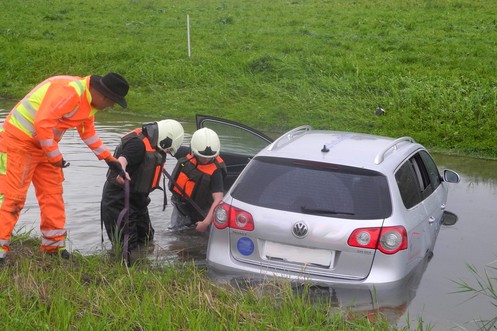 Auto landet nach Ausweichmanöver in Kanal
