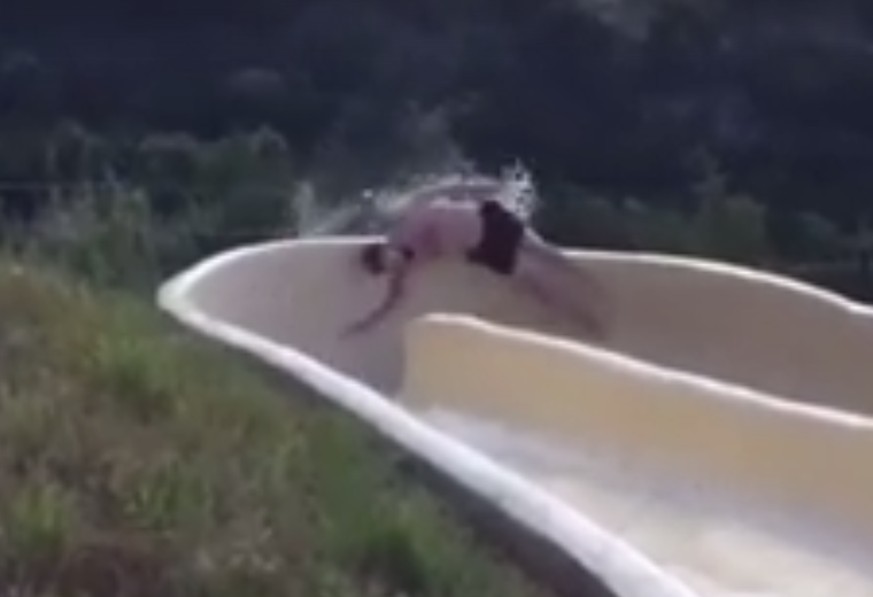 Oh Shit! Mann fällt aus Wasserrutschbahn und landet im Spital