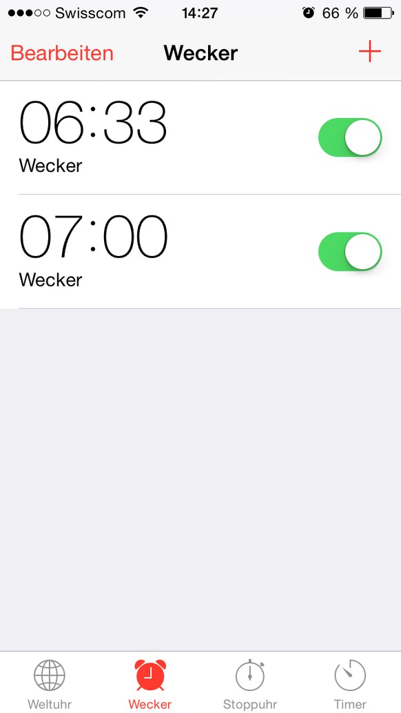 Der Einfache macht kein Heckmeck um sein Aufwach-Prozedere: Der Wecker läutet – natürlich mit Standard-Melodie –, dann wird aufgestanden.