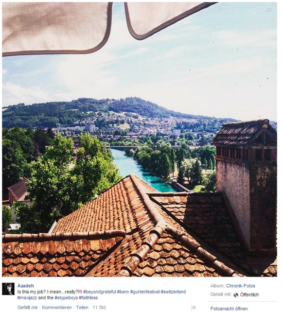 Und hier haben wir noch einen Facebook-Eintrag von Azadeh (Persisch für «Vordenkerin»), die mit Faithless auftritt. «Ist das mein Job? Ich meine ... Echt jetzt? #MehrAlsDankbar». Zugegeben, Charme hat Bern ja!11:37Nachlese