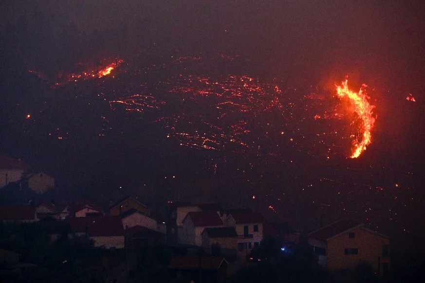 Mehr als 700 Feuerwehrleute kämpften vergangene Nacht in Portugal gegen lodernde Waldbrände. Ein ganzes Dorf musste evakuiert werden.Bild: EPA/LUSA