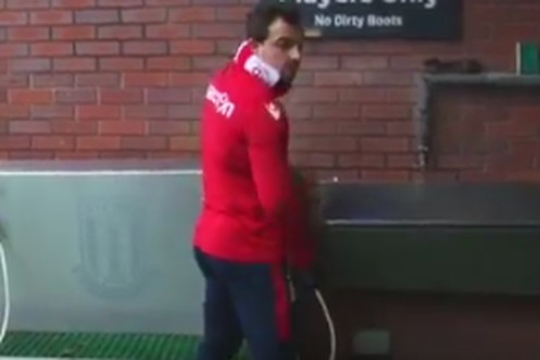 Dumm gelaufen! Fussballer im Neon-Trikot hält Steward für seinen Mitspieler