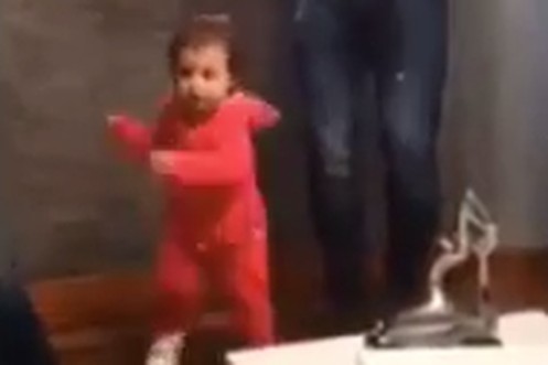Dieser Knirps will zu Papi. Aber Papi muss Fussball spielen. Denn es ist Lionel Messi