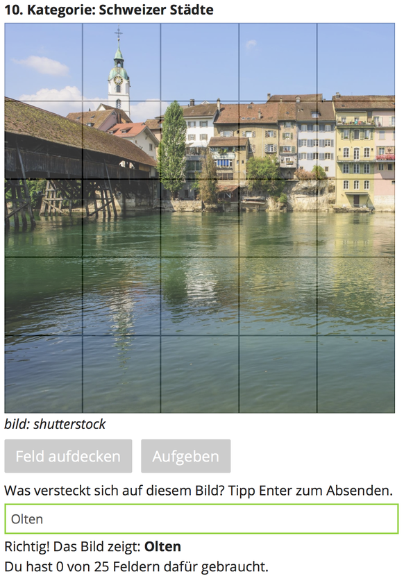 Um dein Ergebnis anzuzeigen, musst du bei jedem Bild die Lösung erraten oder aufgegeben haben.