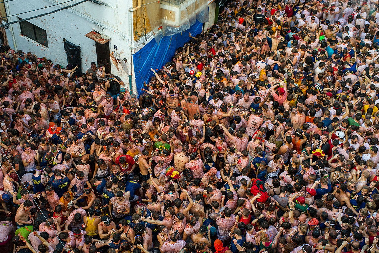 La Tomatina in Spanien Puh, das sieht gefährlich aus! Kein Wunder, trägt einer der Tomaten-Schlacht-Teilnehmer zum Schutz einen Velohelm. Findest du ihn? (PS. Das ist eindeutig das schwierigste Bild von allen, aber auch das letzte. Also, gib noch einmal alles!)