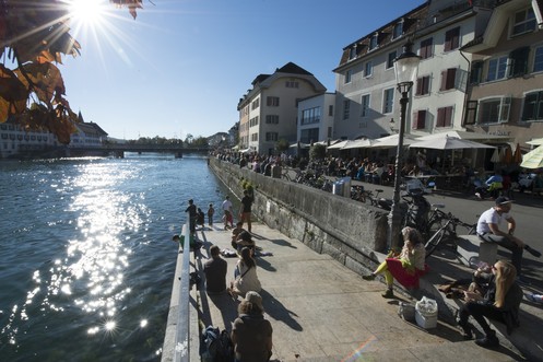 Rhein bei Schaffhausen mit Dieselöl verschmutzt