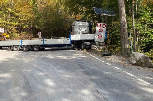Pneubagger stürzt um und blockiert die Strasse stundenlang