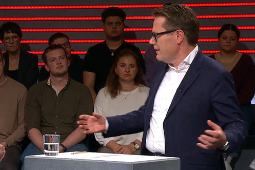 Mit ausgestreckten Armen – Moderator Sandro Brotz stellt «Ordungsantrag» in SRF-«Arena»