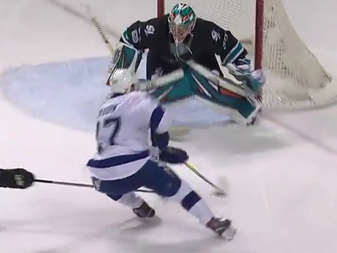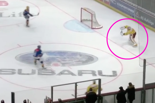 Hockey-Goalie zielt ganz genau und trifft in Unterzahl